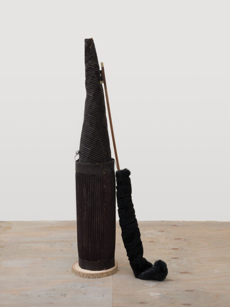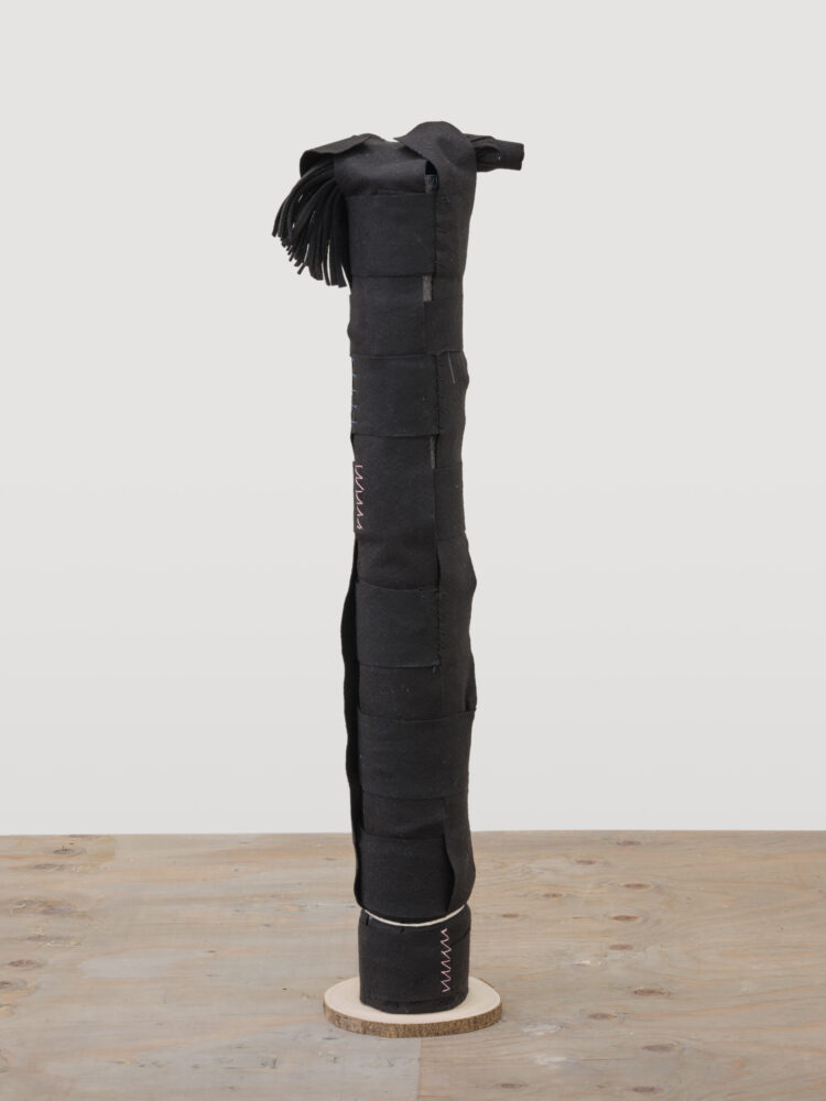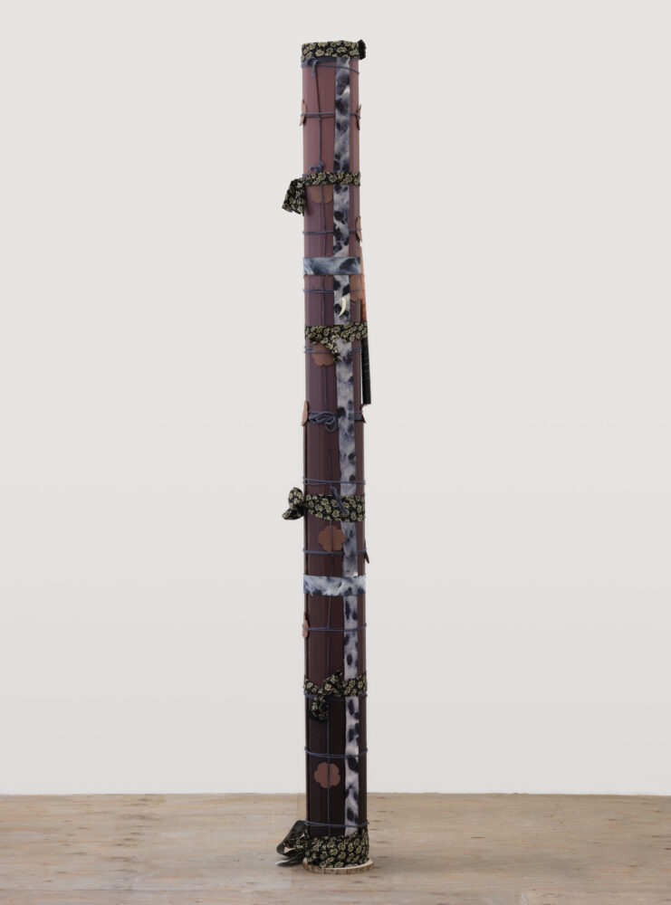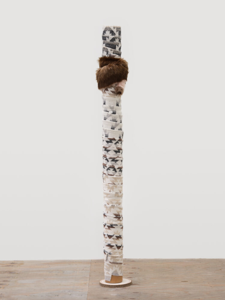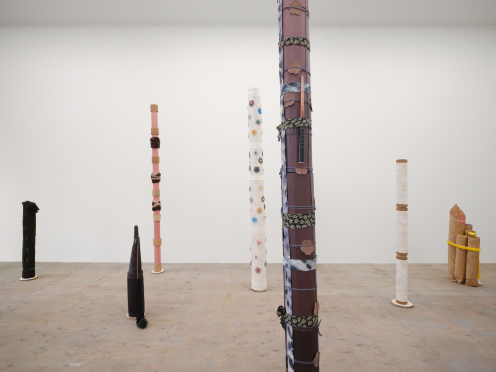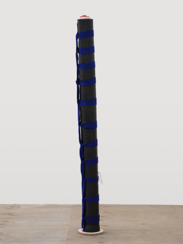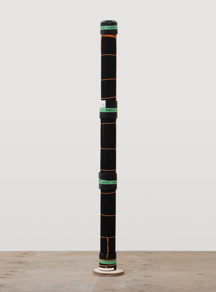 Working with synthetic, store bought materials such as shipping tubes, corrugated cardboard, yarn, beads and craft felt, Vickers explores how the natural world is often reimagined or replaced in contemporary urban life. This playful sense of materiality is also a nod in part to the artist’s longtime reflections on cultural frameworks of beauty and value.