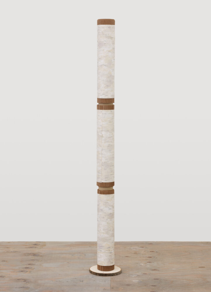 Cardboard, birch bark wall paper, cardboard mailing tube